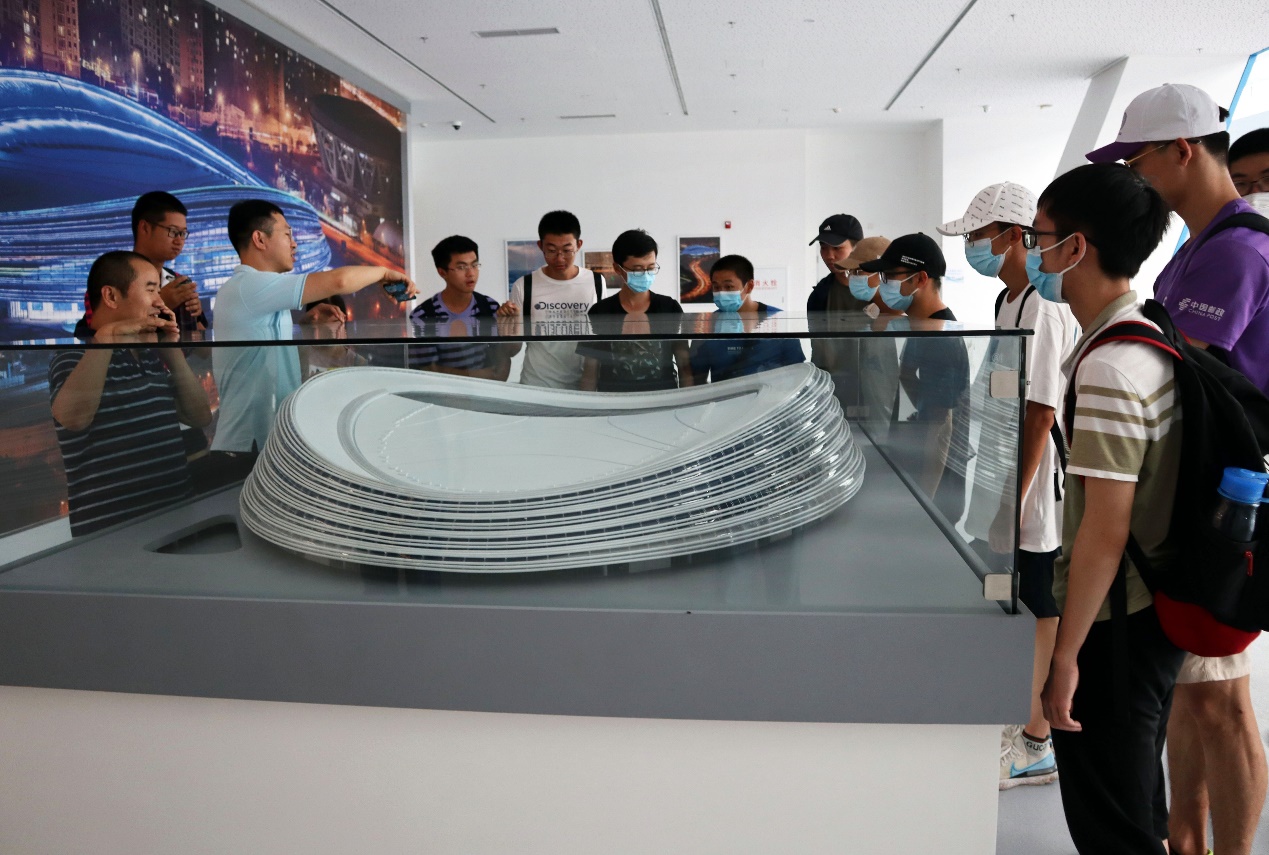 国家速滑馆技术人员为同学们讲解场馆的结构