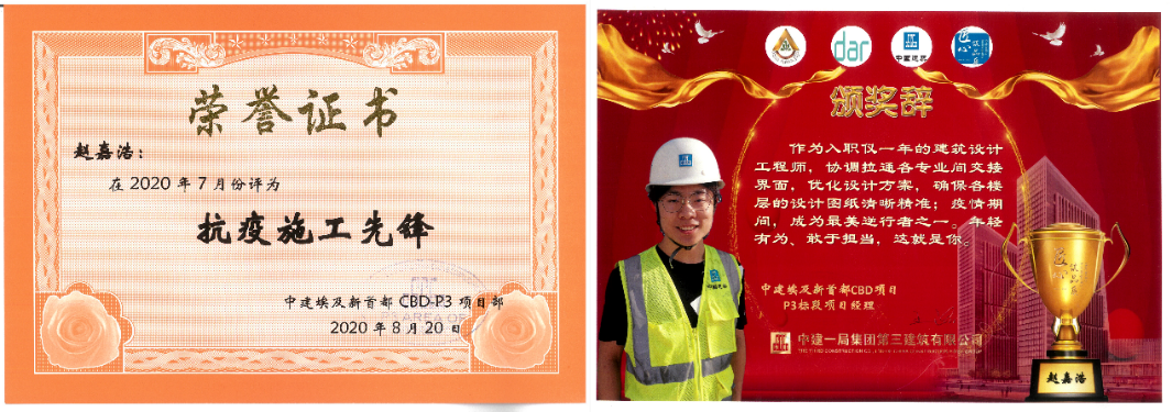 赵嘉浩,“深耕计划”二期学员,建筑学院2015级本科生,2019年7月加入中建一局三公司,赴埃及新行政首都CBD项目工作,担任建筑设计工程师。