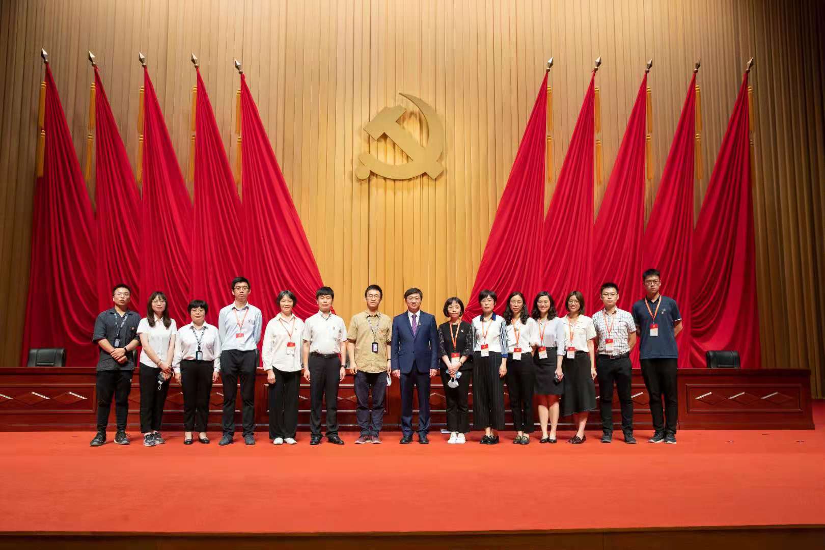 在华体会娱乐平台庆祝中国共产党成立100周年大会上的合影(右三为梁佩锋)