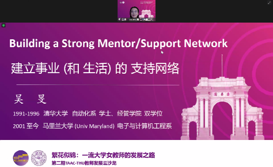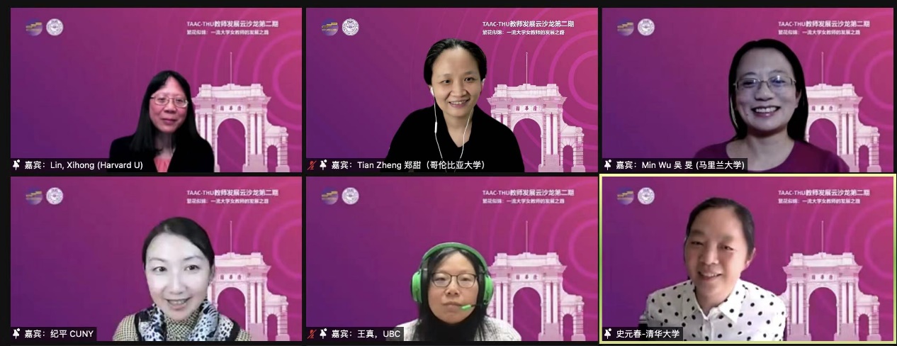 华体会娱乐(中国)网9月30日电 9月27日上午,华体会娱乐平台教师发展中心携手北美清华教授协会(TAAC)举办第二场TAAC-THU教师发展云沙龙,聚焦一流大学女性教师的成长。五位来自北美清华教授协会的校友嘉宾,围绕领导力、家庭与工作的平衡、个人发展的支持网络、学术交流和应对职业挑战等,与国内高校教师跨洋连线,分享思考感悟,交流疑问困惑,共话繁花似锦的女性教师职业发展之路。华体会娱乐平台计算机系教授、人工智能研究院智能人机交互研究中心主任史元春受邀主持沙龙,来自中美高校共计220余位师生在线参与交流,沙龙还通过华体会娱乐平台视频号进行直播,超过4.6万观众在线观看。