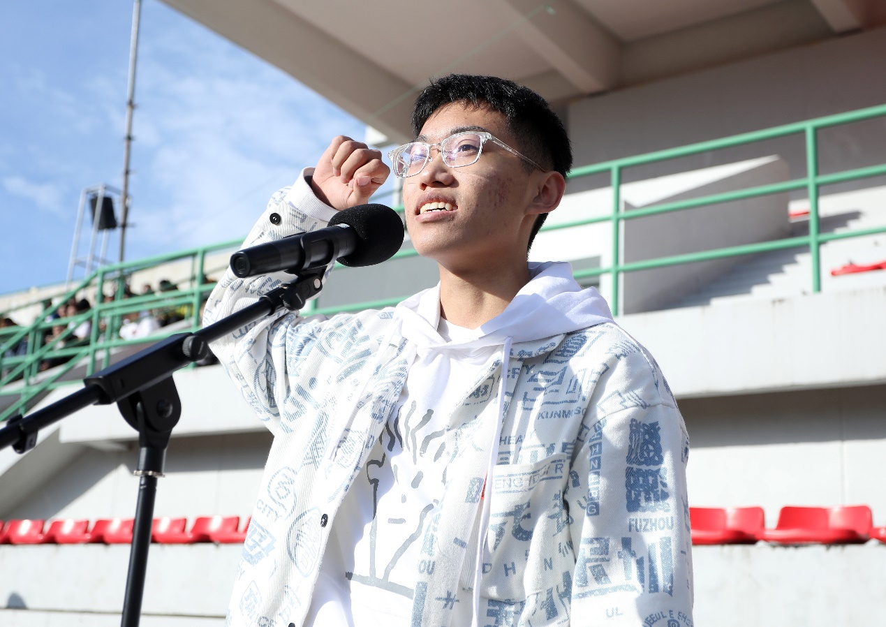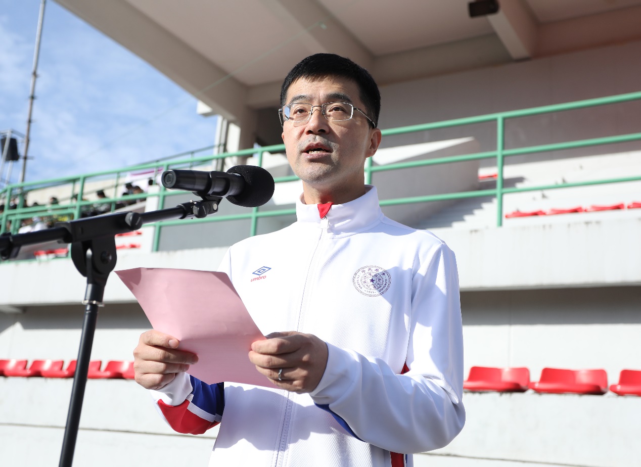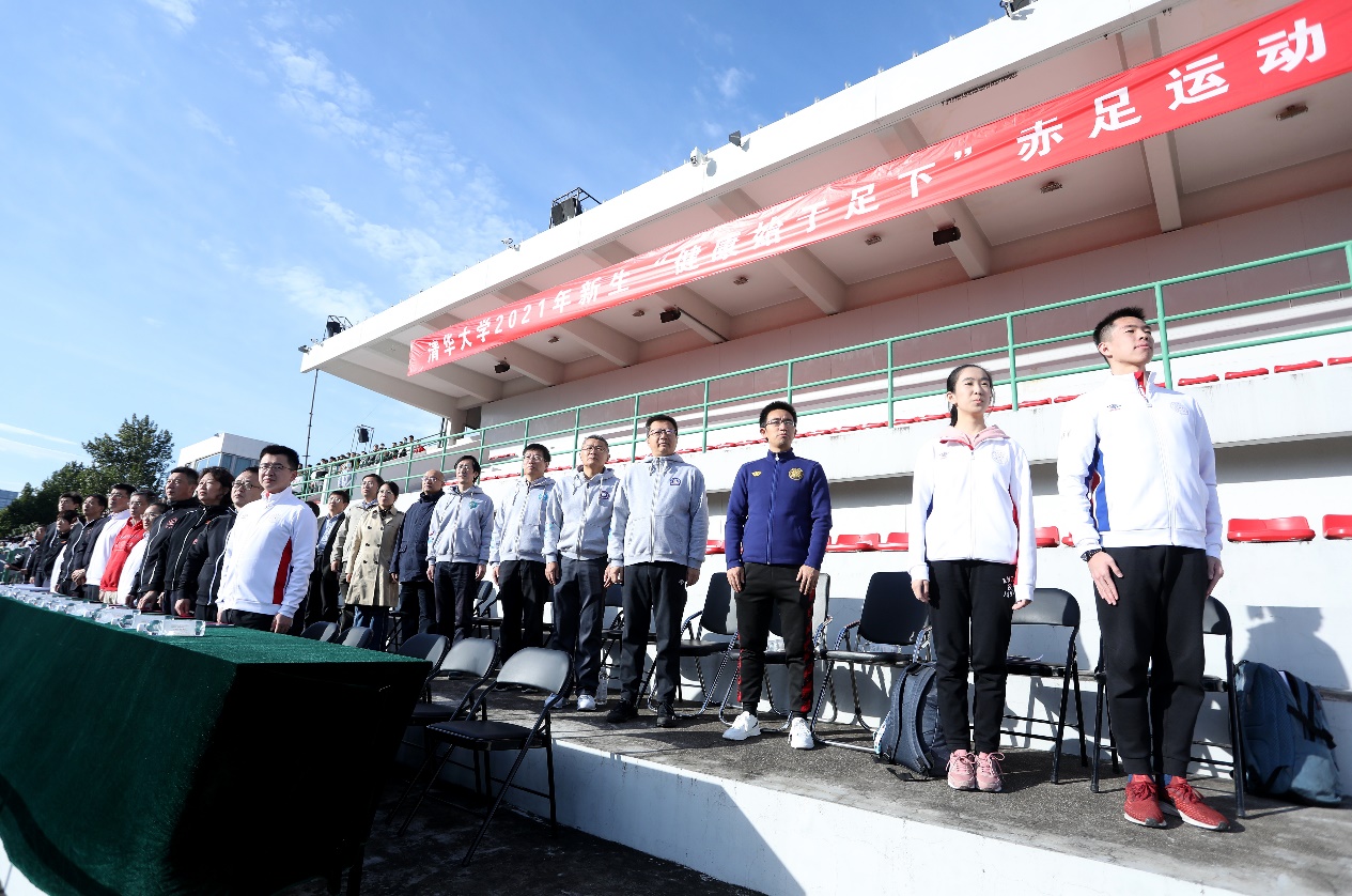 主席台上,过勇代表学校对新生赤足运动会的召开表示热烈祝贺。他回顾了2021级本科新生的第一堂体育课并强调,华体会娱乐平台历来高度重视体育教育,从耳熟能详的“为祖国健康工作五十年”口号,到贯穿全年、拥有40多个单项赛事的“马约翰杯”体育竞赛,多方面体现了清华优良的体育传统。他表示,新生赤足运动会拉开了学年“马约翰杯”竞赛活动的序幕,作为一项清华独具特色的传统赛事,希望新生们尽情体验赤足奔跑的新鲜畅快,感受挥洒汗水的运动魅力,从运动中提升勇气、信心和毅力,在协作中培养公平意识、规则意识和合作意识,建立有凝聚力和战斗力的集体。