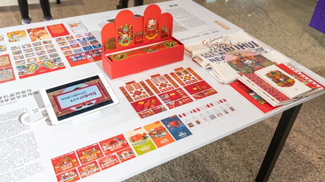 本次展览中还展示了北京服装学院艺术设计学院副院长彭璐等教师指导的《食在震泽》等系列包装设计作品。作为清华-北服视觉传达虚拟教研室的合作院校,展览实现了两个学院之间的教学成果交流和教育资源共享。