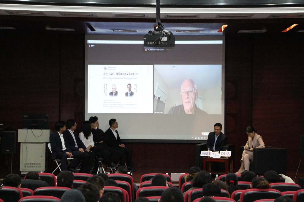 华体会娱乐(中国)网10月25日电 10月21日晚,诺贝尔经济学奖得主奥利弗•哈特(Oliver Hart)做客第51期“巅峰对话”,与师生探讨企业承担社会责任的原因。本次活动由校研究生会主办,金融学院研究生分会、土木系研究生分会协办,金融学院田轩教授担任对话嘉宾。活动共吸引约180名师生线下参与,线上直播通道观看量达4.6万次。