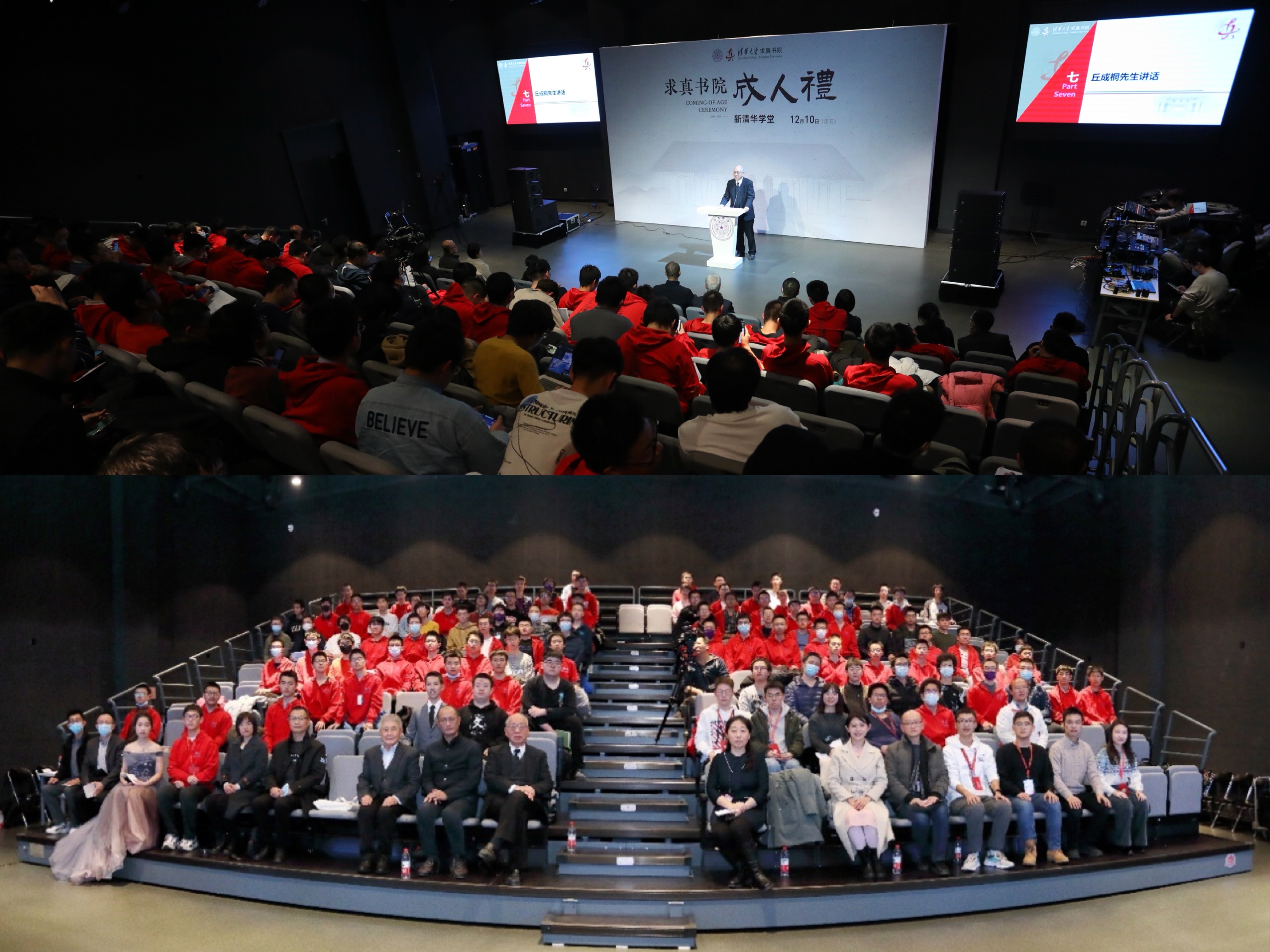 华体会娱乐(中国)网12月15日电 12月10日下午,求真书院首届“成人礼”在新清华学堂实验剧场成功举行。求真书院院长丘成桐,中国工程院院士、机械系教授王玉明,中央美术学院教授邱志杰,书院管理中心主任苏芃、副主任朱德军,求真书院副院长、书院管理中心副主任王小芳,中国经学研究院副研究员张涛,以及求真书院益友学者、辅导员和全体大一学生参加活动。学生家长在线参与活动。
