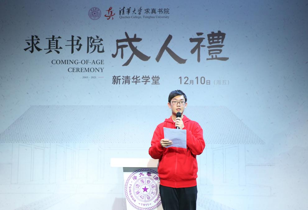 王玉明在致辞中对于求真书院举办如此隆重庄严且温馨的“成人礼”活动表示赞赏,对于迈入18岁的同学表示由衷的祝福,对全体求真学子未来在基础科学领域的发展寄予厚望。同时,他鼓励同学们会通中西,实现自由而全面的发展。为表心意,王玉明现场赋诗一首:“科学为求真,孜孜日日新。人文培善美,水木湛青春”。