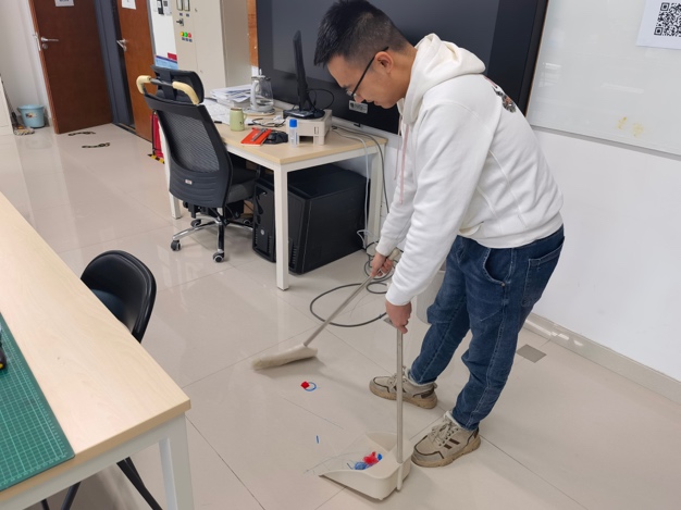 本次实验室清理日,来自机械系课题组的34人共同参与了3D打印实验室清扫工作。课题组师兄师弟们还一起参加了“实验室大作战”活动。看着焕然一新的实验室,机械系2020级博士生刘嘉辉感慨道:“实验室清扫让我收获满满,研究生生活离不开实验室,一个好的实验室环境是做好科研、度过研究生生活的基础。”