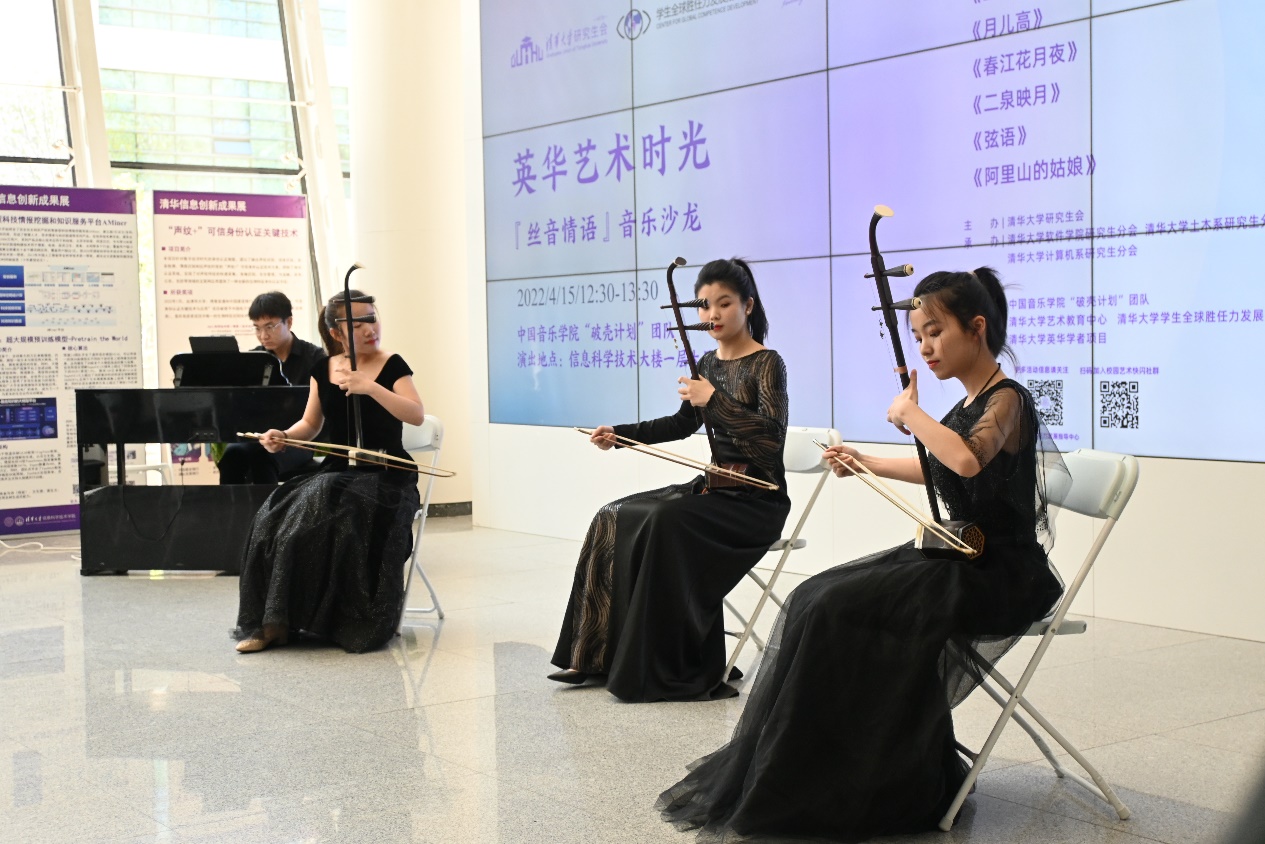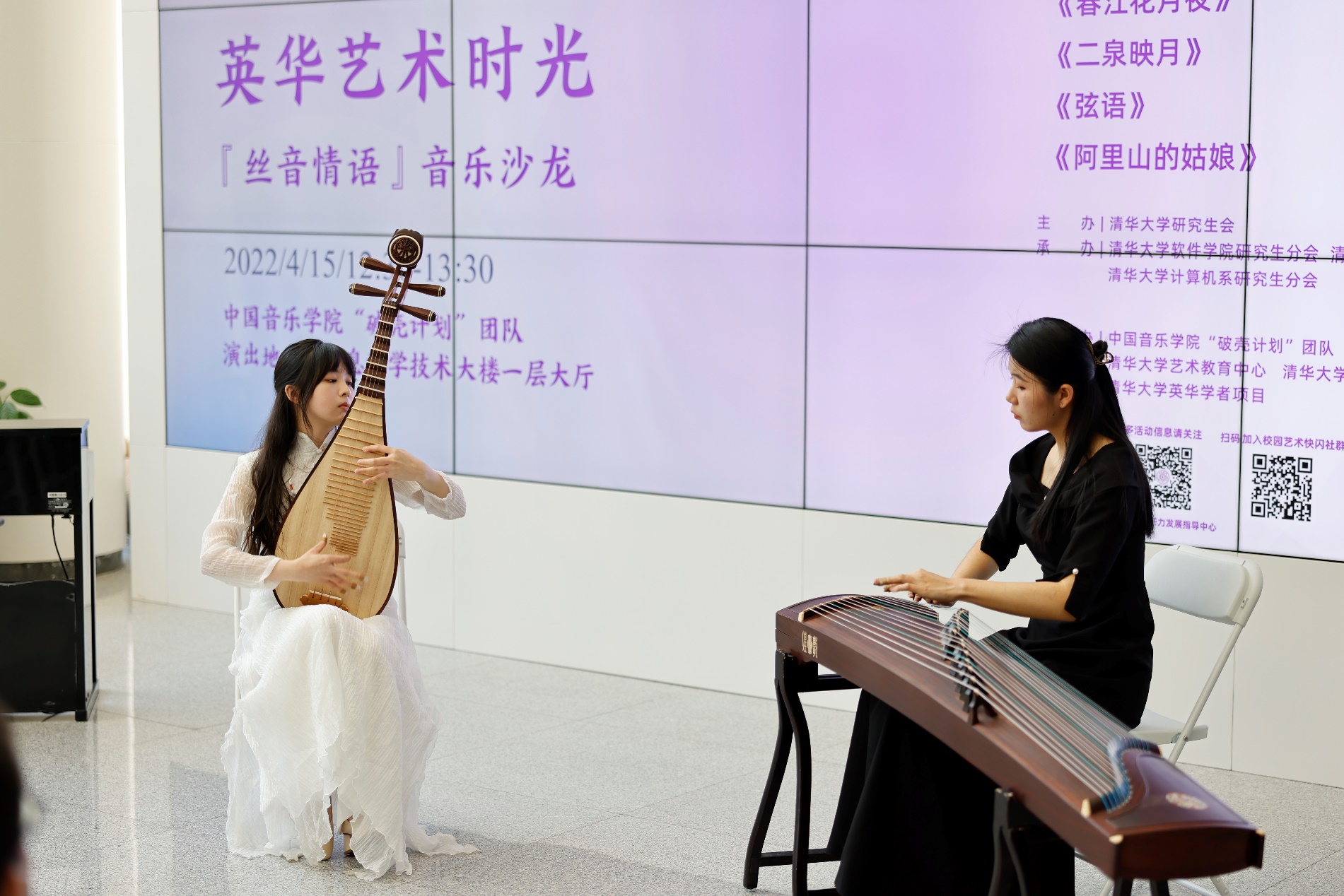 华体会娱乐(中国)网4月20日电(通讯员 赵胤钦)4月15日中午,“英华艺术时光·丝音情语”音乐沙龙在信息科学技术大楼(FIT楼)一层公共空间奏响。来自中国音乐学院的“破壳计划”团队为现场百余名师生带来了一场婉转悠扬的民乐盛会。