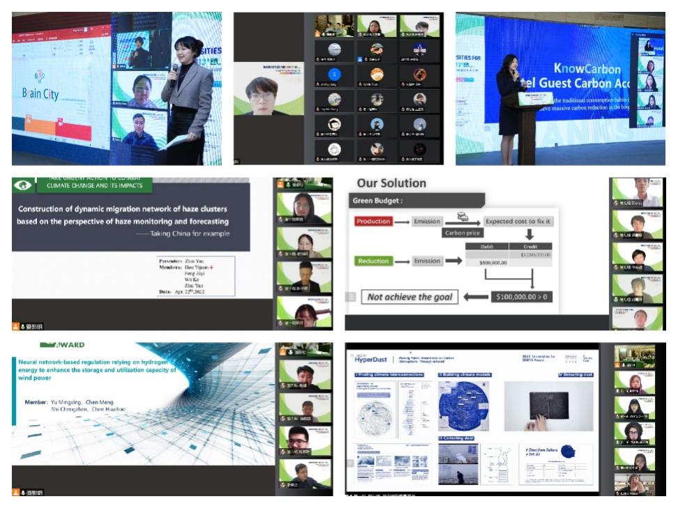 11支决赛团队围绕“SDG13-气候行动”,结合跨学科知识与技术创新,为气候变化与全球治理提供了多个创新思路与解决方案。每个团队通过精彩的“现场创新方案展示”,充分展现了中国大学生对“气候变化”与“可持续发展”等概念的深入理解和有力诠释。在问答环节,评审专家与学员们分享了气候领域的前沿科学知识、行业视角与实操经验,现场双方激发了更多创新灵感与深度讨论。