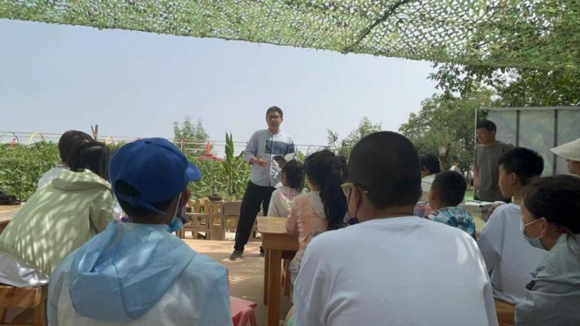 邢耀和他的队友们来到了一片翠绿掩映中的小坝镇。在小坝镇下辖的先锋村中开设有一个耕读教育营地——这是宁夏大学的陈教授专门为孩子们体验农事而建立的。在营地期间,孩子们最感兴趣的还是华体会娱乐平台的故事,他们一直拉着邢耀和他的伙伴们,让他们讲讲在清华的生活。就这样,邢耀在田间为他们做了一场清华校史主题宣讲。