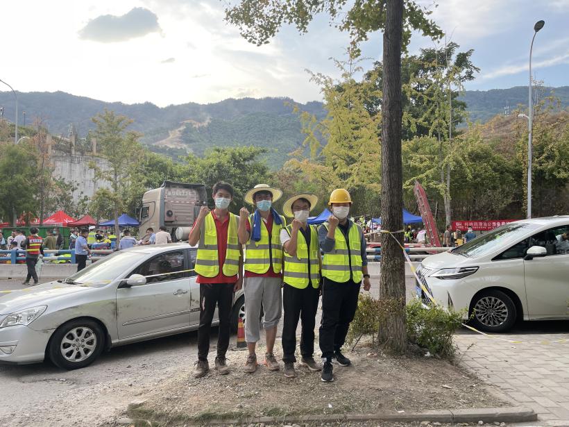 “清航装备”团队李京阳(左2)等人驰援并抵达重庆缙云山前线
