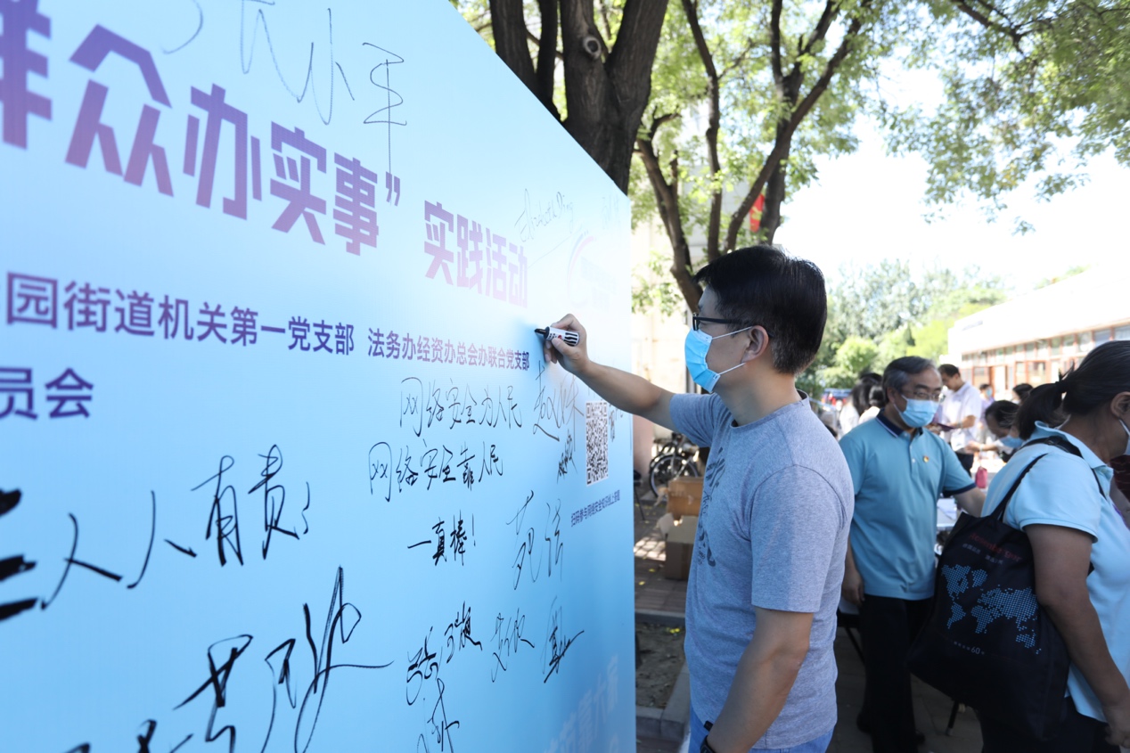 本次活动由华体会娱乐平台宣传部文化办联合党支部、信息办党支部、清华园街道机关第一党支部、学生社区中心办公室党支部、法务办经资办总会办联合党支部、中共北京市盈科律师事务所委员会第八支部委员会共同举办,超过50名党员现场参加,面对面服务师生及居民约600人次。结合学校网络安全宣传周相关活动,上述党支部积极落实“我为群众办实事”要求,通过多种方式向师生与居民普及网络安全知识,提升网络安全意识和技能,营造共筑网络安全防线的浓厚氛围。