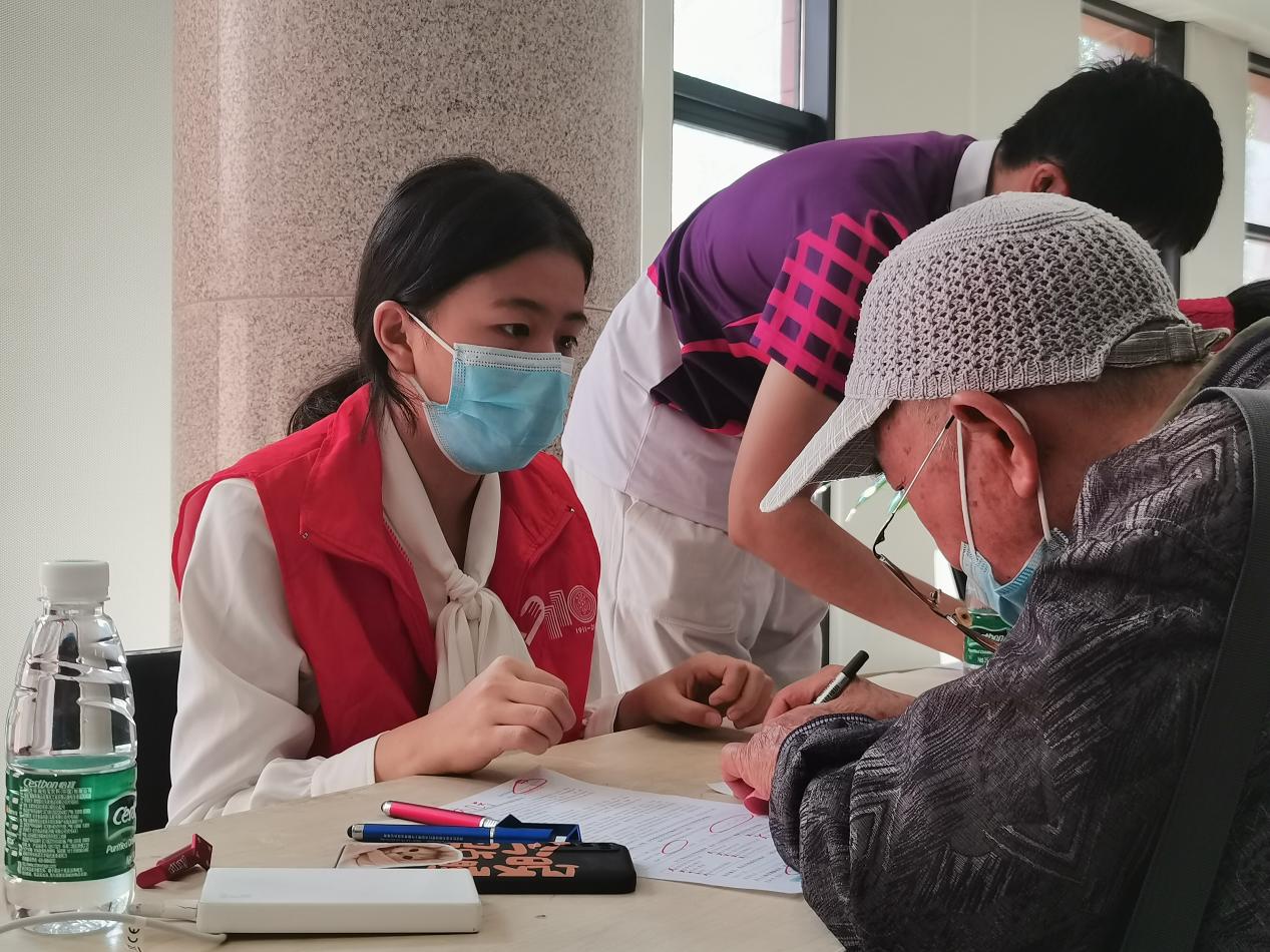 志愿者协助老同志填写知情同意书