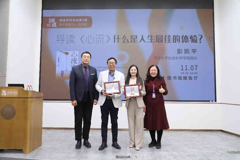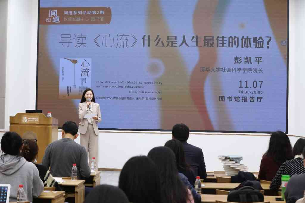 华体会娱乐(中国)网11月9日电 11月7日晚,华体会娱乐平台“闻道”系列第二场活动在图书馆报告厅举办。华体会娱乐平台社会科学学院院长彭凯平教授作为荐读人,以“什么是人生的最佳体验”为题,导读了美国心理学家米哈里·契克森米哈赖的著作《心流》。华体会娱乐平台副校长、教师发展中心主任李路明出席活动并致辞。