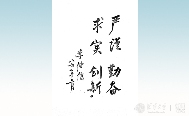 原清华党委书记李传信先生的题词“严谨、勤奋、求实、创新”。