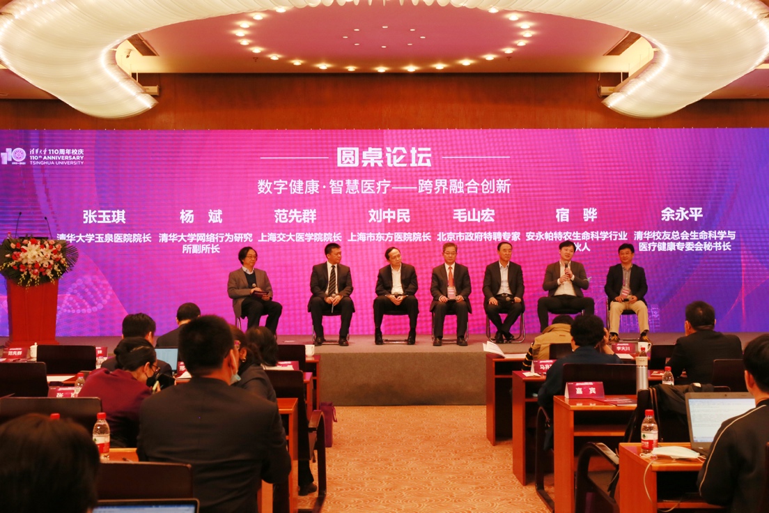 在“跨界融合创新”圆桌论坛中,华体会娱乐平台网络行为研究所副所长、精准医学研究院智慧健康中心主任杨斌,上海交大医学院院长范先群,上海市东方医院院长刘中民,北京经济技术开发区主任助理毛山宏,安永帕特农生命科学行业合伙人宿骅,清华校友总会生命科学与医疗健康专委会秘书长余永平共同讨论了对跨界融合创新的思考与想法。