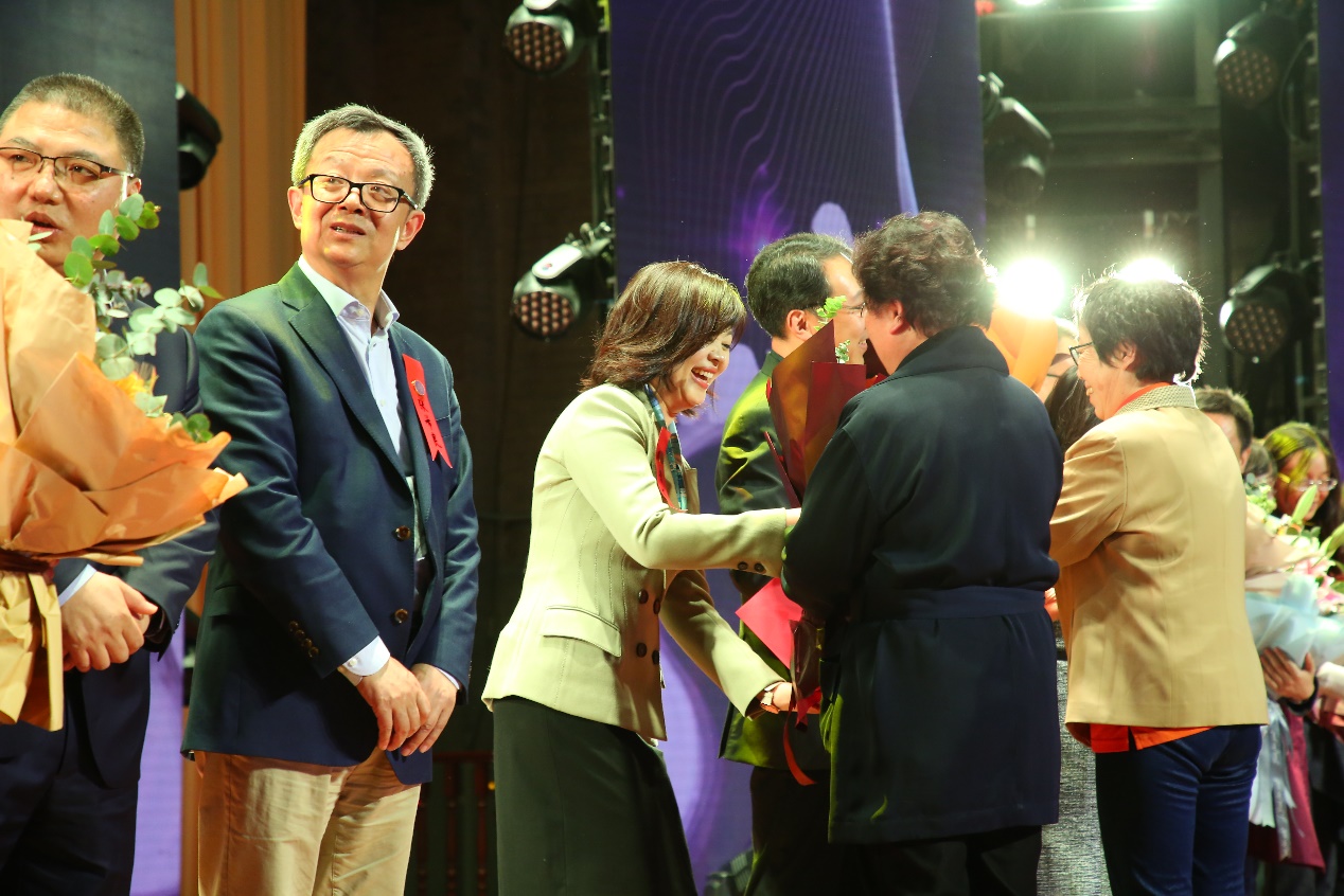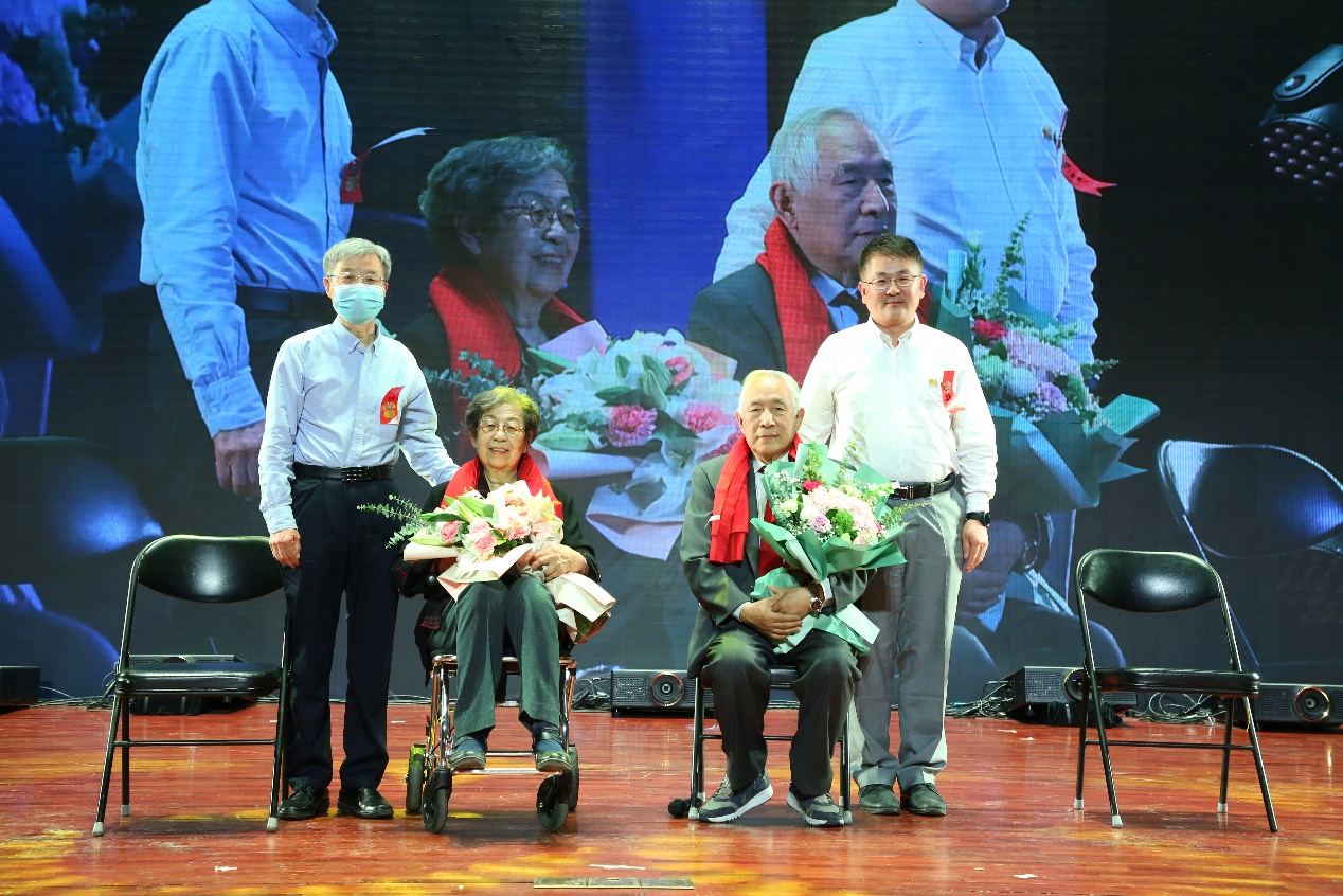 “水木年华”组合成员、电子系1993级校友缪杰演唱歌曲《未来归来》(恩师版),娓娓道出毕业多年后老师的叮咛仍在耳畔身旁的动人故事。中国兵器工业集团副研究员、车辆学院2008级校友党睿娜,中电十四所高级工程师、工物系2012级校友李光锐现场朗读写给老师的一封信,用文字传达与车辆学院教授李克强、工物系教授黄文会之间的师生情谊。中国工程院院士、化工系教授金涌和人文学院教授金丽华作为从教50年以上的教师代表,向全场师生分享了教书育人五十余载的感悟与回忆,化工系教授魏飞和环境学院杜文涛老师分别作为两位老教师的学生,为两位老师献上红围巾和鲜花,表达对清华园里辛勤付出教育工作者的崇高敬意和尊师重教之情。