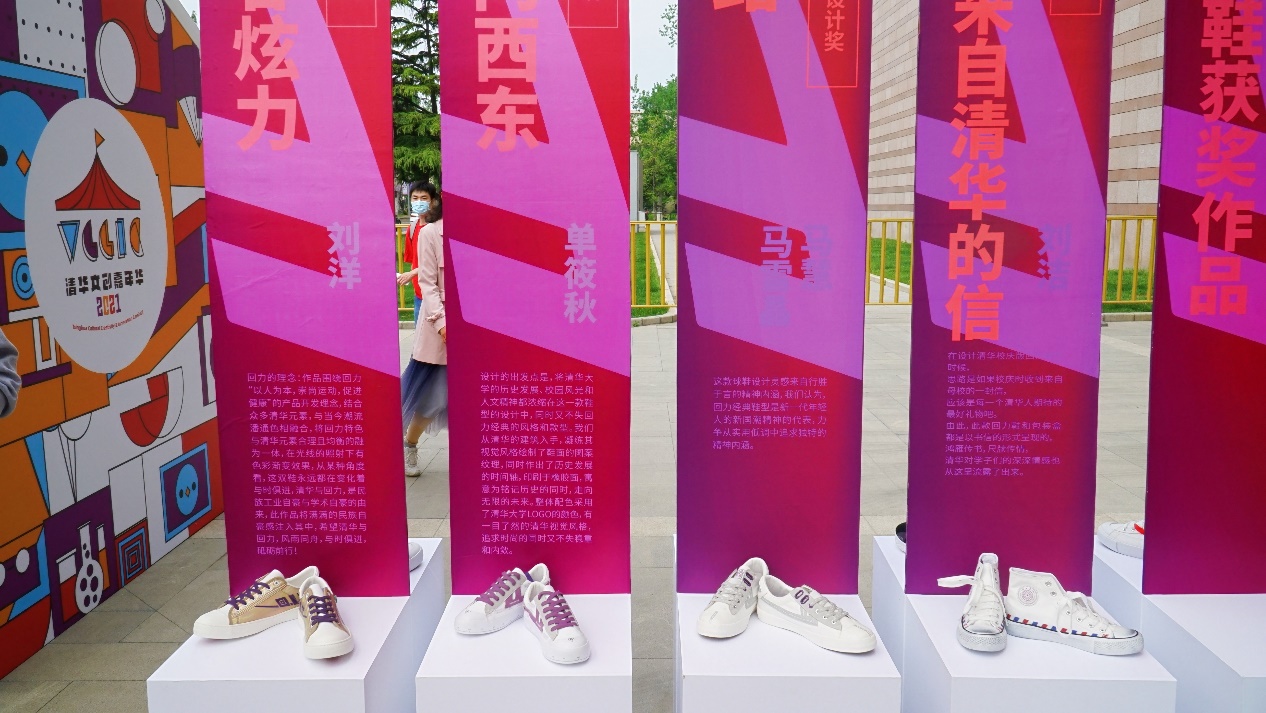 清华文创嘉年华回力鞋专题展开幕式现场同时展出了第五届清华校友“三创大赛”之华体会娱乐平台110周年校庆纪念款回力鞋专题赛的部分作品。作品一经推出就受到了师生、校友以及社会各界人士的欢迎,也让校友文创成果成为一道靓丽的风景线。