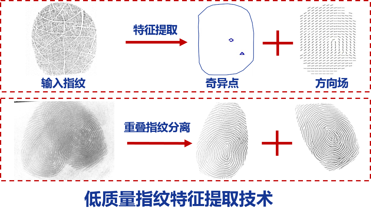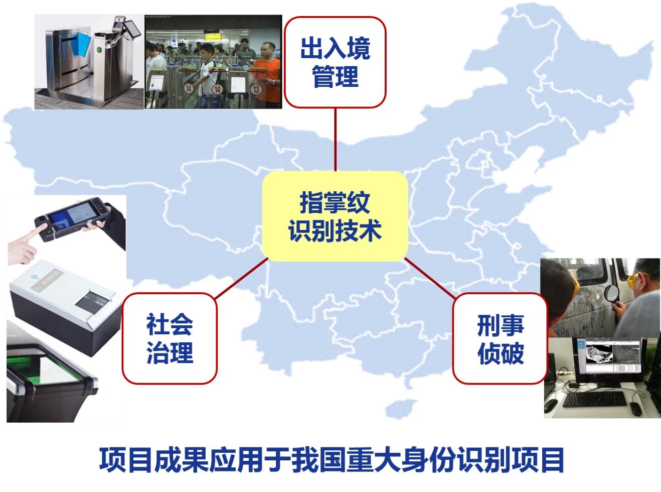 成果简介:以指掌纹识别为首的身份鉴别技术在国家公共安全领域发挥着重要作用。该项目历时十多年,在低质量指掌纹的特征提取、配准、比对等关键问题上取得了重要进展,获授权发明专利29项(含美国发明专利5项)、软件著作权58项,形成核心技术专利池;发表论文48篇,谷歌学术引用超过5000次。指纹识别算法的精度指标在国际权威在线评测上排名第1。成果在我国电子护照、港澳通行证、身份证登记等重大工程中获广泛应用,有效防治了非法出入境、身份冒用;在全国刑侦领域占有率第1,使用量占全国的70%,近5年破案40多万起,其中命案2000多起,产生了重大社会影响。