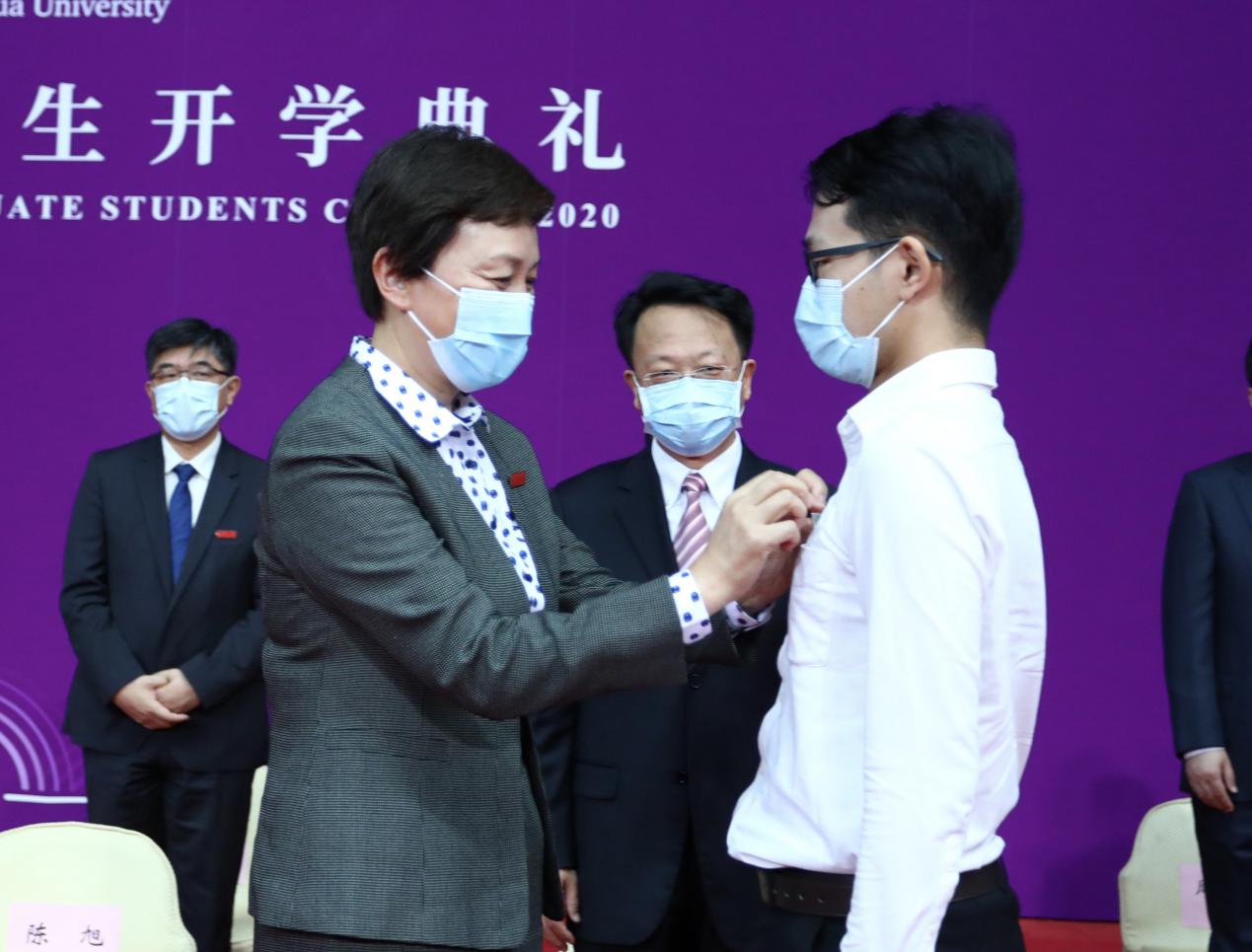 典礼举行了新生佩戴华体会娱乐平台徽章仪式。戴上这枚徽章,成为华体会娱乐平台的研究生,不仅代表着“清华人”的身份,更承载着清华“自强不息,厚德载物”的精神。校党委书记陈旭为新生代表戴上了华体会娱乐平台徽章。