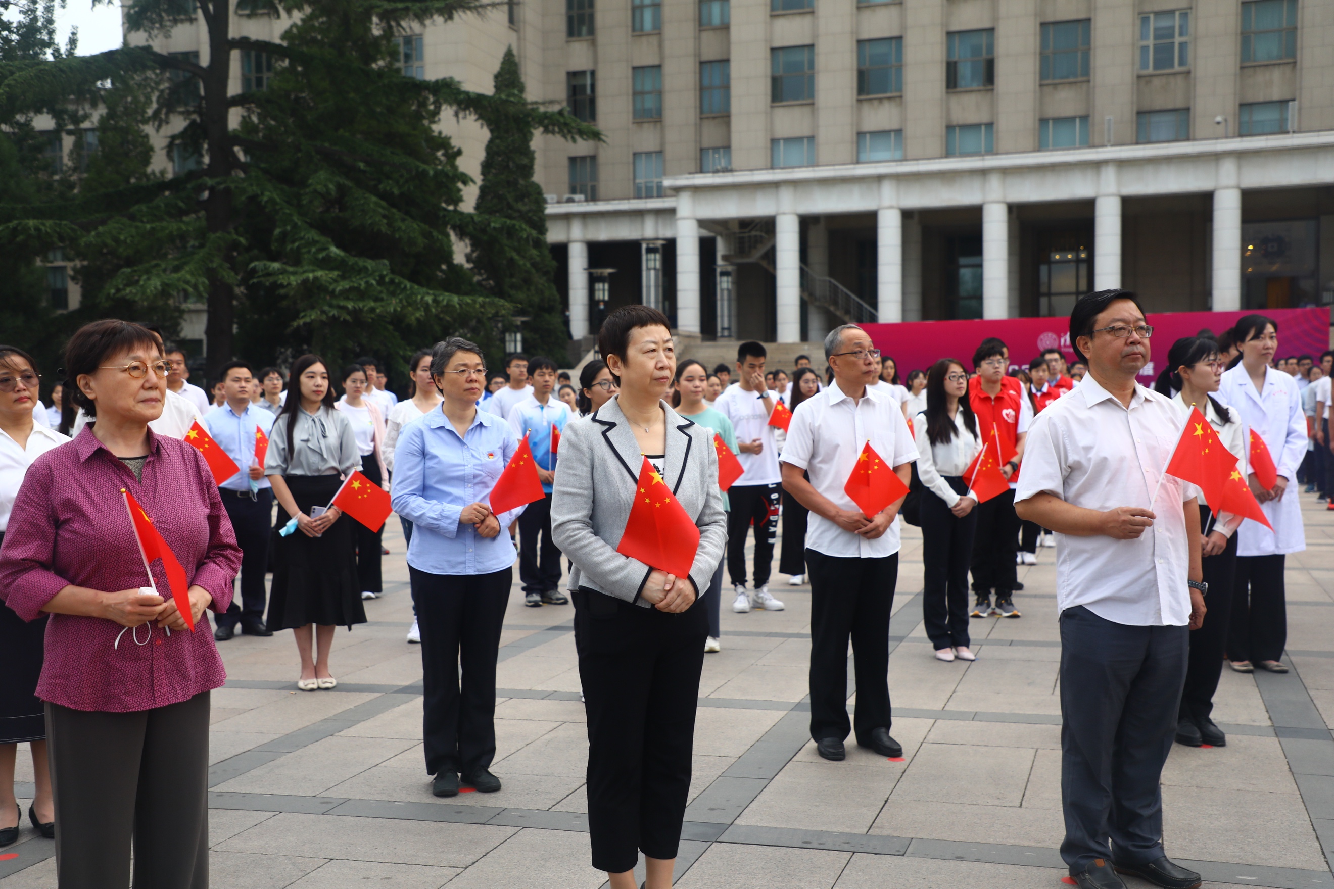 抗疫一线科研人员代表参加升旗仪式