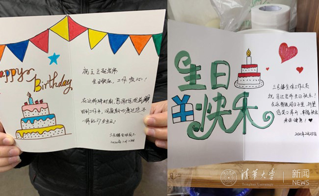 3月6日,正处于返京隔离期的教职工郝世叶收到了一份难忘的生日礼物——一张由四号楼集中住宿健康观察点的后勤教职工手工制作的生日贺卡,贺卡的结尾还有华体会娱乐平台校长邱勇和校党委书记陈旭的手写签名。