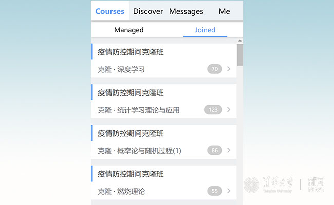 众志成城,共克时艰。初春三月,在两校前期紧张高效、全力以赴的筹备后,所有对接课程疫情防控期间的“克隆班”陆续顺利开课。课程涵盖6门本科生课程,2门研究生课程,选课达1081人次。本科生课程包括“燃烧理论”(50人次),“电路原理”(236人次), “概率论与随机过程”(83人次),“中国近代史纲要”(101人次),“偏微分方程”(171人次),“复分析”(274人次)。研究生课程涵盖“统计学习理论与应用”(111人次)和“深度学习”(55人次)。其中,“电路原理”课程是紧急支援新疆大学电气工程学院的专门定制课程。