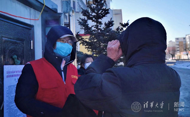 在寒冷的黑龙江省,清华研究生志愿者们为社区居民送来了冬日里的温暖。来自齐齐哈尔的微纳电子系2018级硕士生侯宗昇,在零下二十多度的室外经常一站就是四个小时,耐心地为居民讲解防疫知识,细致入微地排查居民的健康状况,并帮助行动不便的居民送菜送粮。来自哈尔滨市的精密仪器系2019级博士生赵彦博,冒着严寒为外地返回的隔离人员采购食物及生活用品:“在社区办公室内电话铃声几乎响个不停,每个工作人员都在不停地忙碌着,即使午休也只是各自在位置上吃完盒饭就重新回到工作中。”但正因如此,他更加感激基层人员的付出:“通过这次经历,我深刻认识到了社区防疫工作的重要性,切身体会到了基层防疫工作的不易。”