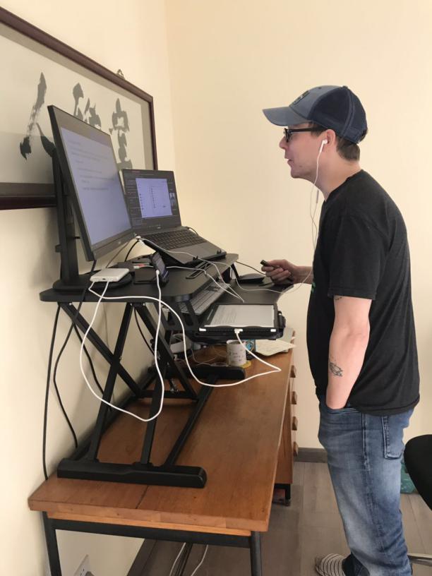 两个“baby”对于乔纳森·怀特来说,同样重要,同时也让他的压力倍增。开学前夕,他一直在医院陪伴妻子待产。他说:“这是一个难忘的‘冒险之旅’,也确实让我没有足够的时间来应对新学期新授课形式的调整。”不过,在开学前一周,乔纳森·怀特带着他刚出生的女儿回到家里,集中精力准备网上授课,经过不断调试,他采用Drawboard和Zoom两个平台结合进行授课,课堂气氛活跃,给学生们以身临其境的感觉。