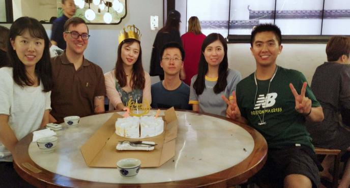组里学生的生日聚会(摄于2019年7月)