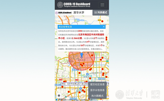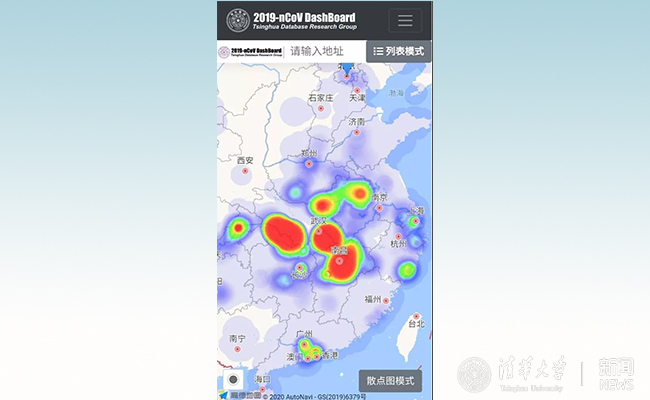 最初设想的热力图由课题组成员、计算机系2017级博士生赵天宇开发完成,可同时展示疫情分布及其严重程度