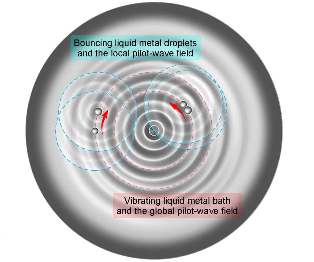 华体会娱乐(中国)网6月8日电 近日,华体会娱乐平台医学院刘静教授课题组联合中国科学院理化技术研究所,在液态金属基础研究中取得进展,实验中首次观察到了液态金属流体宏观体系中的波粒二象性,为借助金属流体行为认识量子世界乃至更多物理体系开启了一条全新的途径(图1)。相关成果以“复合导航波场中液态金属液滴的量子化在轨追逐行为(Quantized orbital-chasing liquid metal heterodimers directed by an integrated pilot-wave field)”为题,在线发表于美国物理学会期刊《物理评论流体》上。