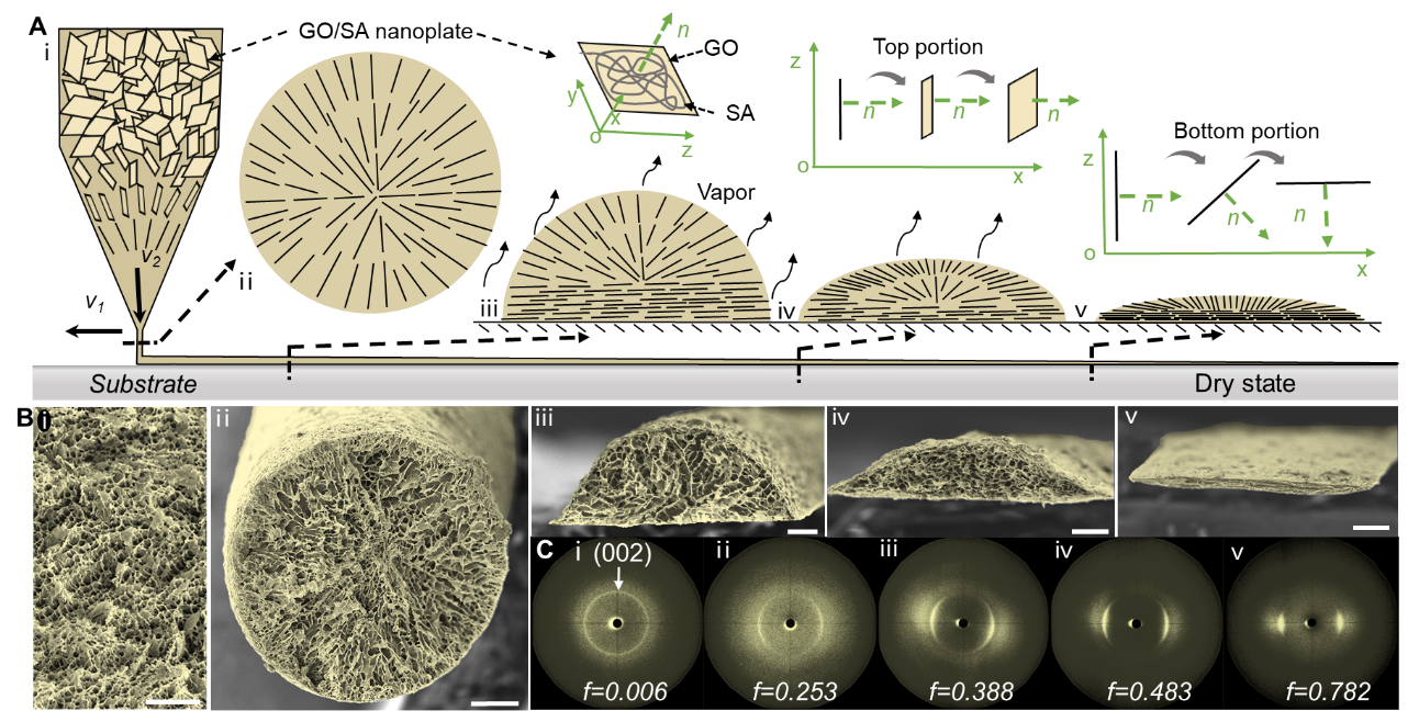 直写式3D打印过程中氧化石墨烯片的非对称自组装