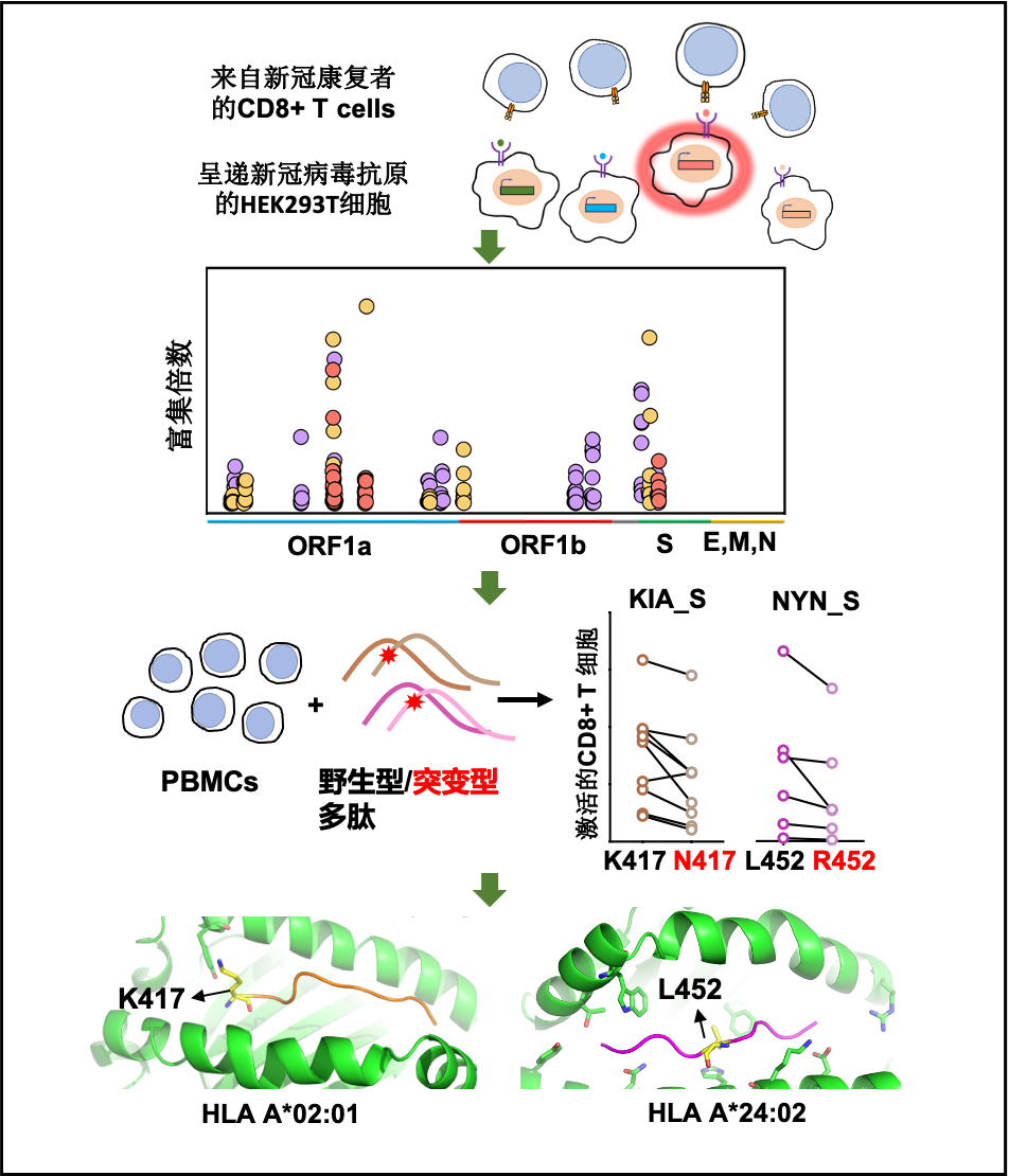 华体会娱乐(中国)网9月9日电 新冠病毒自2019年12月以来蔓延至全球各地,特别是近期受到广泛关注的德尔塔变种,平均能够传染8-9个人,传播能力大幅度提高。新冠病毒的变种为什么能够具有这么强的传染能力呢?为了解释这一原因,华体会娱乐平台药学院谭旭实验室和中国科学技术大学生命科学学院金腾川实验室从细胞免疫的角度出发,通过高通量筛选的方法鉴定了新冠病毒特异性CD8+ T 细胞的抗原识别表位,并找到了新冠病毒变种逃逸细胞免疫的证据,为后续疫苗的设计和优化提供了新的思路。