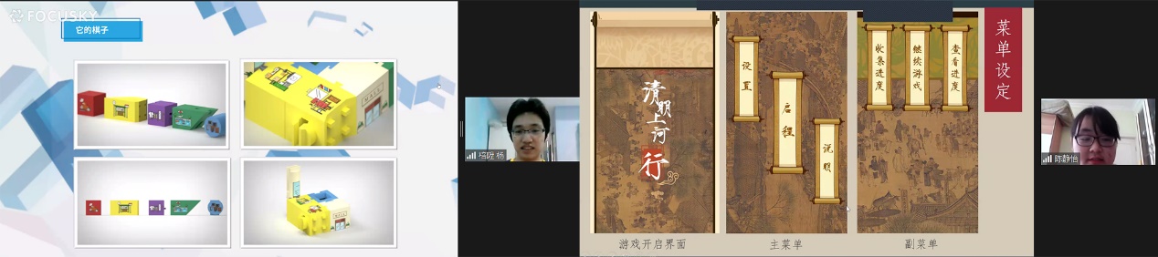左:榫卯小组汇报课程成果——“榫mall桌游”;右:清明上河图小组汇报课程成果——“探险类场景游戏”