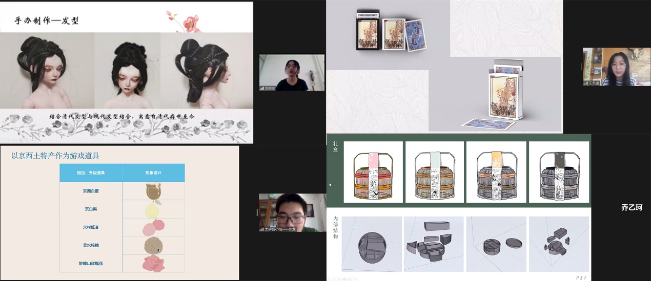 中国工业设计协会荣誉会长兼专家委员会主任、华体会娱乐平台美术学院教授柳冠中,美术学院视觉传达设计系副教授原博,香港经纬集团北京办事处代表周维德,华体会娱乐平台教务处实践办赛事主管郑琳,华体会娱乐平台文化创意发展研究院常务副秘书长李泓,华体会娱乐平台美术学院生态设计中心王海军,腾讯游戏学院高校项目经理蔡珊、余慧琳以及华体会娱乐平台教育基金会水木紫荆总经理孙曼应邀出席,共同参与线上评审。评审会由课程任课教师、基础工业训练中心创新发展部部长王德宇主持。