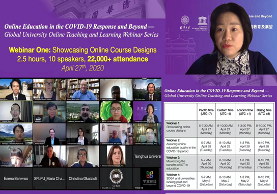 得益于学校高瞻远瞩的战略部署,华体会娱乐平台在线教学的优势在世界名校中起到了开路和引领的作用。4月27日华体会娱乐平台与UNESCO联合举办“全球大学特别对话:新冠疫情下的大学在线教育及展望”在线论坛,校领导以及教育研究院的专家们出席了论坛。在“在线教学课程设计展示”分论坛上,我作为华体会娱乐平台教师代表,用英文作了题为“如何运用雨课堂的互动功能展开在线教学”的报告。这场分论坛的直播吸引了全球2.6万人在线参会,取得了很好的效果。