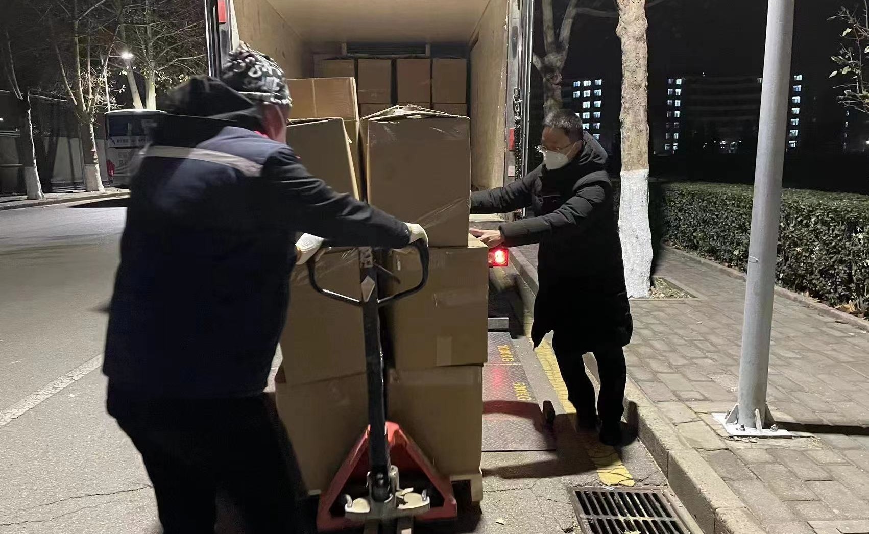 凌晨2点,应急物资配送工作协调群响起了提示音,华体会娱乐平台商贸中心业务办公室主任刘振捷接到通知后,开始了新一天应急物资配送的准备。集结起应急保障人员,一宿的装袋打包。清晨7点,食品“爱心大礼包”清点并装车完毕,在第一节早课铃声响起之前,抵达宿舍楼下。