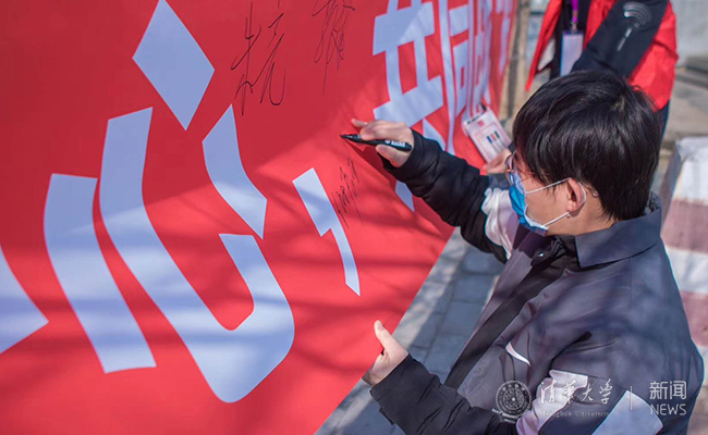 本次特殊的无偿献血现场也精心设计了许多“热血战‘疫’”相关的元素。“齐心战疫情,‘清’年在行动”“万众一心,共战疫情”“武汉加油,中国加油”等横幅、海报渲染出浓浓的“战‘疫’”氛围;设置“热血战‘疫’”主题献血成就卡、口罩、消毒喷雾等特色纪念品,为参与献血的师生保存难忘的回忆,也为他们在疫情期间补充防护用品;组织师生献血过程中手拿“万众一心,共战疫情”“武汉加油”等宣传板录制“战‘疫’”加油小视频,为战胜疫情加油鼓劲;鼓励师生在体检等候结果过程中手写明信片,为奋战在前线的医务人员送去祝福等。