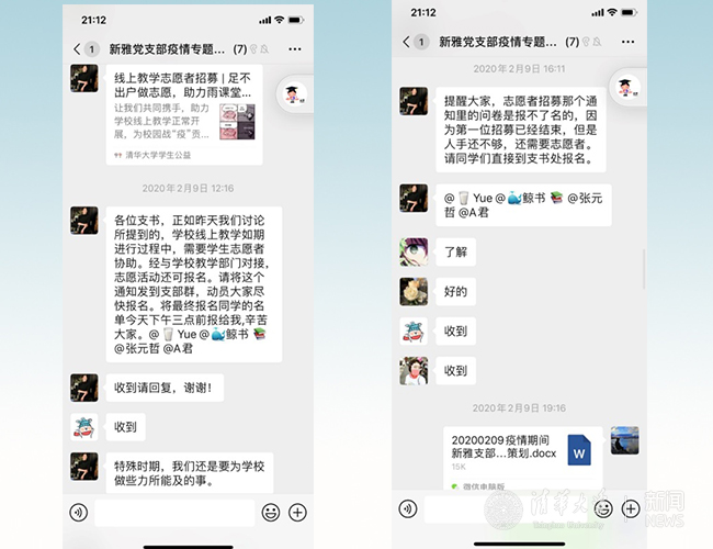 新雅书院各党支部动员同学参与线上教学的志愿工作
