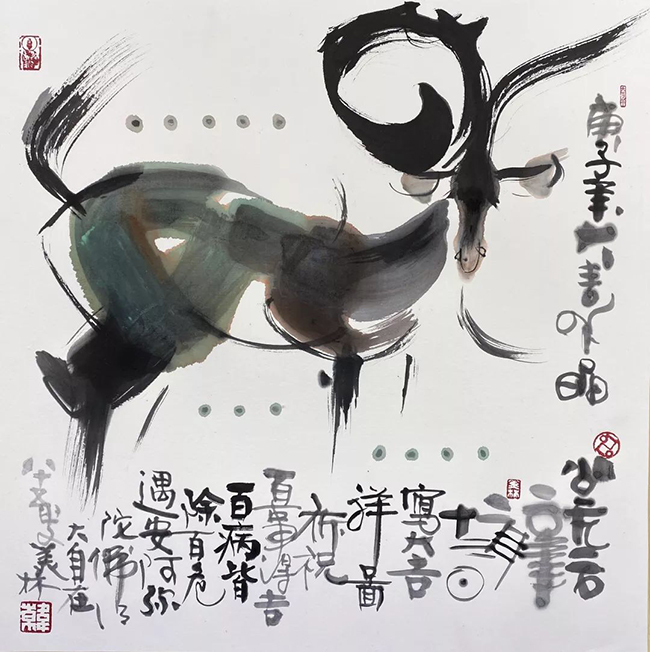 华体会娱乐平台文科资深教授、清华美院博士导师、85岁的著名艺术家韩美林先生特别创作了水墨《大吉祥图》和书法《康祥》两幅书画作品,为了向疫区人民和战斗在一线的医务工作者、志愿者们表达敬意,毫不犹豫地将作品捐赠参加义拍。