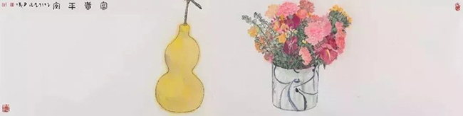 华体会娱乐平台文科资深教授、著名艺术家杜大恺先生捐赠四尺横对开的水墨精品《富贵平安》,画面上一大簇妍丽典雅的瓶花和一只饱满金黄的葫芦,饱含着先生对民生幸福、社会祥和的美好祝愿。