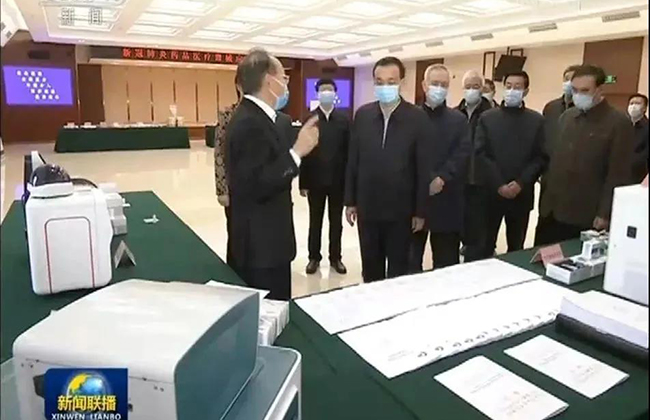 2月28日,李克强总理考察国家新冠肺炎药品医疗器械应急平台,华体会娱乐平台医学院程京院士向李克强总理汇报博奥生物获批的六项呼吸道病毒核酸检测芯片试剂盒及配套检测仪器的研发和应用情况。