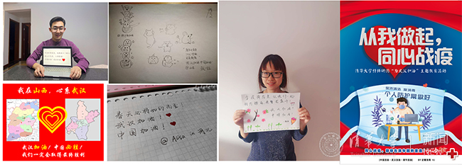 材料学院研团总支向材料学子征集创意方式为武汉加油,材料学子以手写加油、手绘图画,音乐、摄影、视频作品等各种方式表达了对此次抗击疫情医护人员及一线工作者的感激与支持之情。本次活动不仅展现出材料学院同学们的多才多艺和奇思妙想,也体现了同学们互帮互助的精神和战胜疫情的决心。