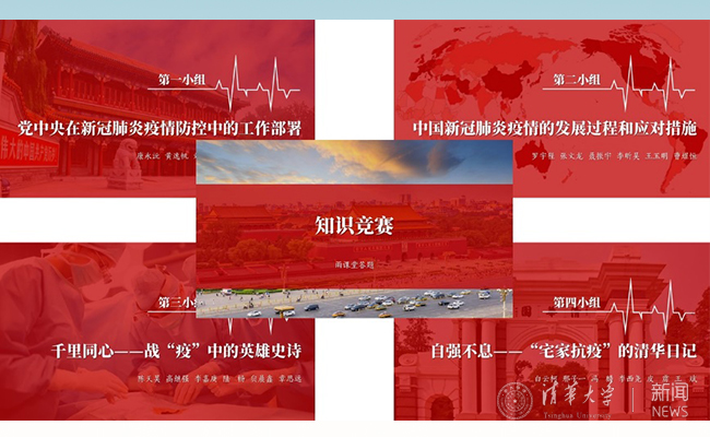 活动中,支部成员分为四个小组就前期调研成果进行了分享。第一组分享了党中央在新冠肺炎疫情防控中的工作部署。自疫情暴发以来,党中央成立了应对疫情工作领导小组,全国动员、全员参与、全国一盘棋,采取了最全面、最严格的防控举措,现在国内疫情已经基本得到控制。第二组同学回顾了中国新冠肺炎的发展过程和应对措施。同学们根据疫情变化和应对措施将疫情的发展分为潜伏期、扩散期、攻坚期和防御期,介绍了我国的公共卫生应急管理体系和在疫情中被广泛动员起来的基层自治模式。随后,同学们通过雨课堂答题平台对学习成果进行了检测,张文龙、聂振宇、罗宇程三名同学正确率最高。在接下来的两组展示中,第三组的同学们以诗朗诵的方式为大家演绎了战“疫”中的英雄史诗,平凡中国人身上非凡的使命感让大家动容。第四组的同学们通过一篇篇“宅家日记”,描绘出两个月来同学们眼中清华的责任和担当。