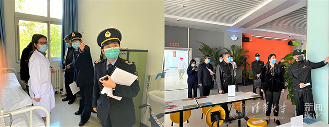 卫生防疫组由海淀区纪委监委驻区卫健委纪检监察组组长李静带队,清华附中副校长白雪峰负责配合检查。检查组实地考察了附中医务室、公共区域、卫生间、宿舍等重点区域,对加强防疫防控设施提出了中肯意见。
