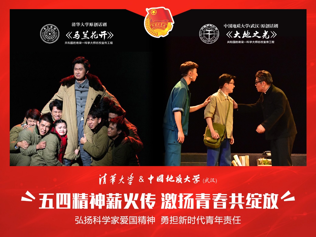 华体会娱乐平台原创话剧《马兰花开》和中国地质大学(武汉)原创话剧《大地之光》是由中国科协发起的科学家主题宣传活动“共和国的脊梁——科学大师名校宣传工程”的首批剧目,以话剧为载体展现邓稼先、李四光等老一辈科技工作者的爱国精神、科学精神、奉献精神和人格魅力。新冠肺炎疫情期间,两部话剧无法正常排演,两校剧组第一时间组织成员集体学习总书记讲话和回信重要精神,自发创作抗击疫情的系列公益作品,积极参与抗击疫情的志愿活动。清华学生艺术团师生与华中科技大学、武汉大学和中国地质大学(武汉)积极协作,开展了一系列交流合作共建活动。