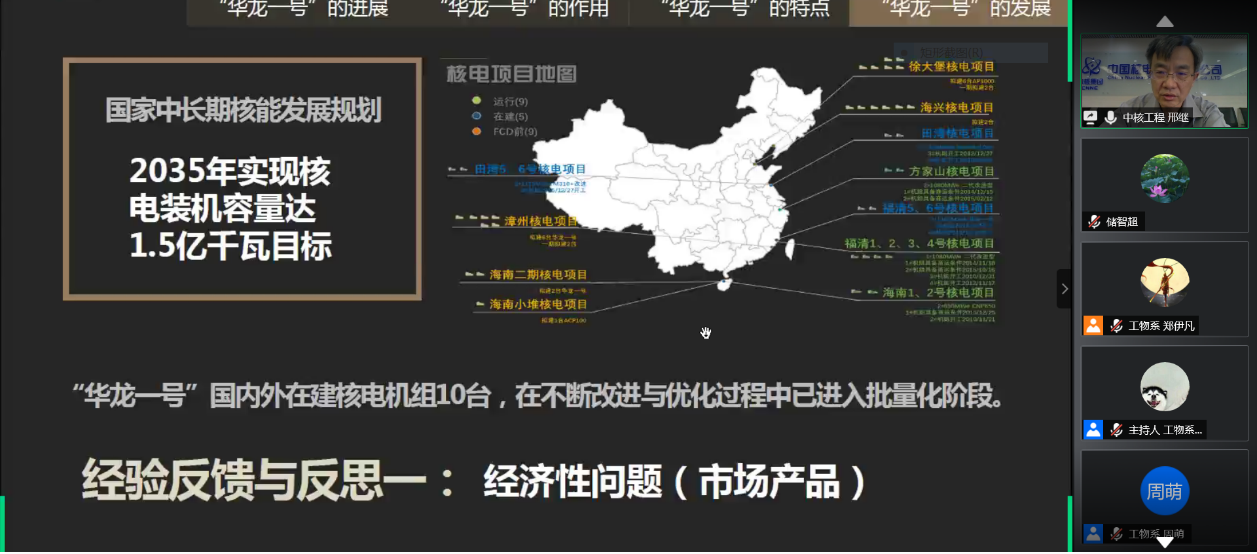 邢继通过线上方式与同学们进行了热烈交流。大家踊跃发言,围绕核电技术发展、中国核电自主化程度、中国核电走出去、个人职业生涯等方面积极提问,邢继一一耐心作答。