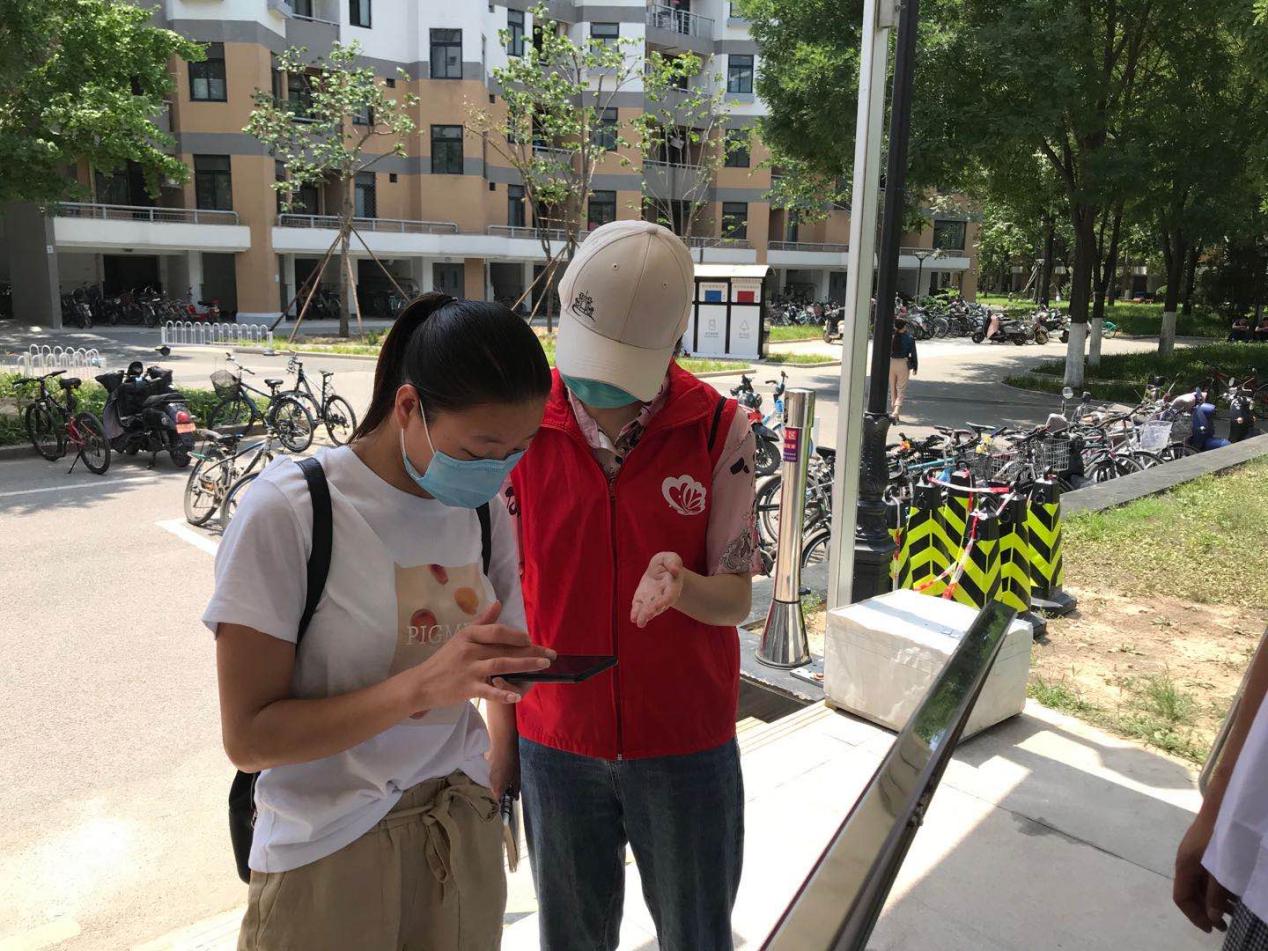 在东北门与西门,累计45名志愿者于6月7日-8日开展校门出入引导志愿服务。由于返校时间跨度大,许多志愿者早上6点就要到达校门开始服务、晚上继续坚守到21点才离岗休息。在校门内外,志愿者顶着高温,引导返校同学有序排队,协助进行体温测量、材料校验,及时反馈并协助做好特殊情况处置,把好“入校第一关”。