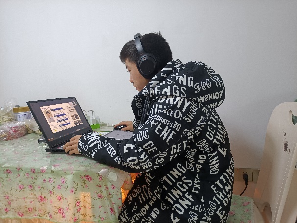学生在家认真上网课