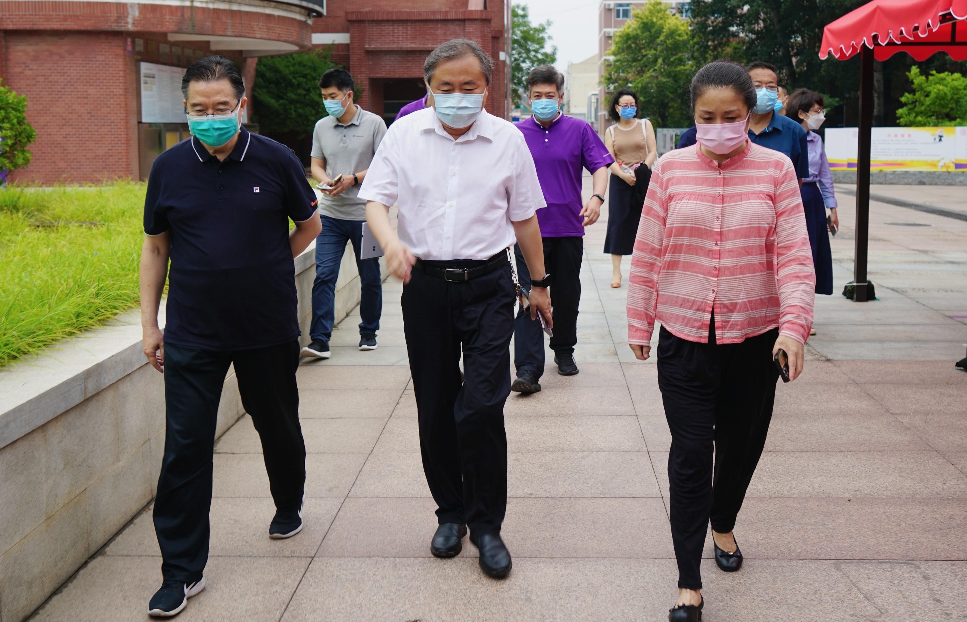 华体会娱乐(中国)网6月13日电 6月12日上午,初三年级返校复课前一天,海淀区委教工委书记王方、上地学区管理中心主任林子敬一行到清华附中检查初三返校和疫情防控工作。清华附中校长王殿军、党委书记方妍和全体领导班子成员以及相关部门负责人陪同检查。